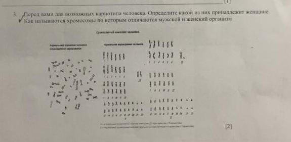 Перед вами два возможных кариотипа человека. Определите какой из них принадлежит женщине. Как называется хромосомы по которым отличаются мужской и женский организм.