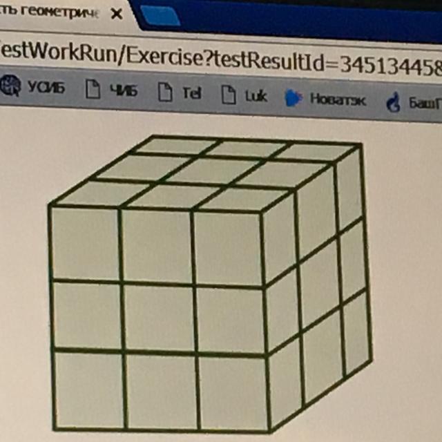 Куб сложен из маленьких кубиков, как показано на рисунке. Поверхность геометрического тела окрашена.