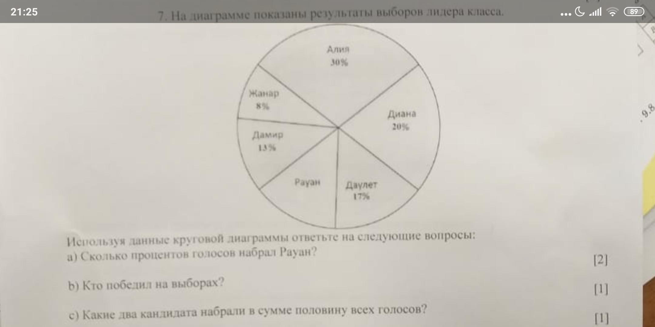 А) 100-(30+20+17+13+8)=12% (Голосов набрал Рауан)
