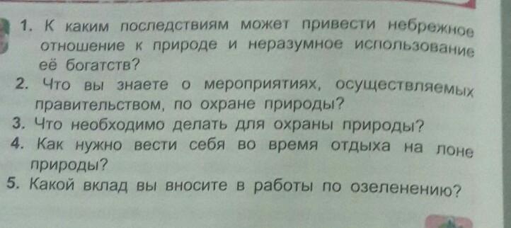 1.Будут погибать растения от растений животные и постепенно дойдет до нас.Нарушится цепь питания.Загрезнение водоёмов,вырубка лесов наносит огромный ущерб природе.