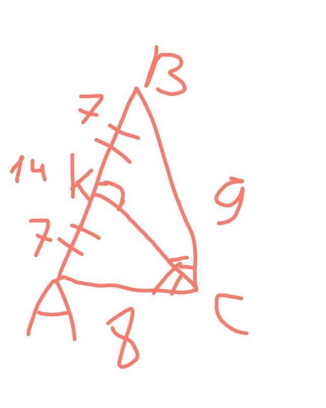 1)Постройки треугольник АВС по трем сторонам (а=14,в=8,с=9)