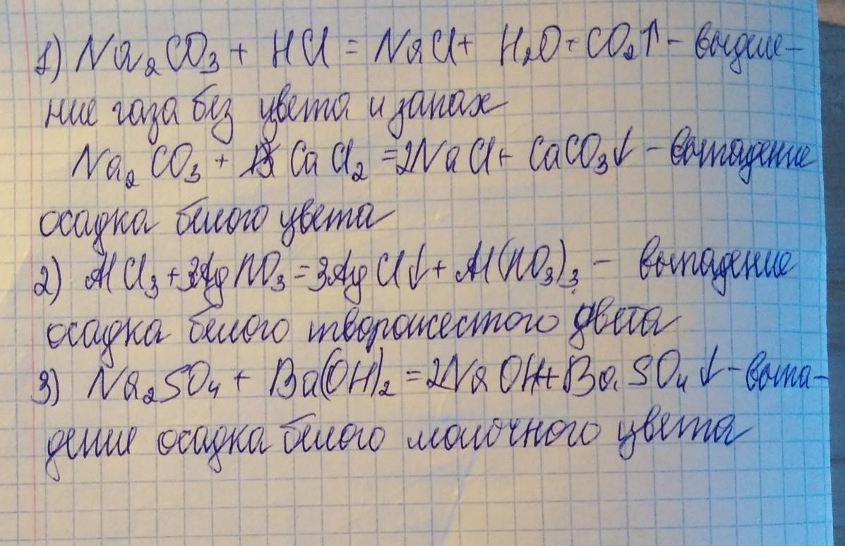 Распознать три неорганических в-ва: Na2CO3, AlCl3, Na2SO4