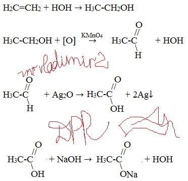 4. H2C = CH2 + H2O ---> H3C - CH2 - OH