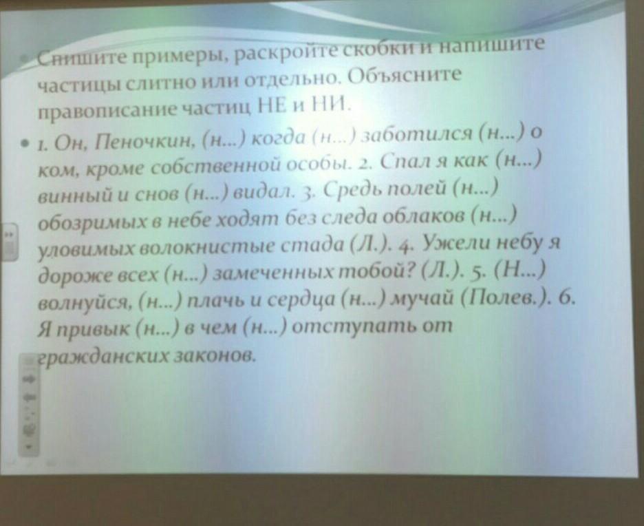 Ответ: ۩ 1. Он, Пеночкин никогда не заботился ни о ком, кроме собственной особы. ۩ 2. Спал я как невинный и снов не видал.۩ Средь полей, необозримых в небе ходят без следа облаков неуловимых волокнистые стада. Ужели небу я дороже всех незамеченных тобой? (Л) Не волнуйся не плачь моё дитя и сердца не мучай (Полев). Я привык ни в чем не отступать от гражданских законов.