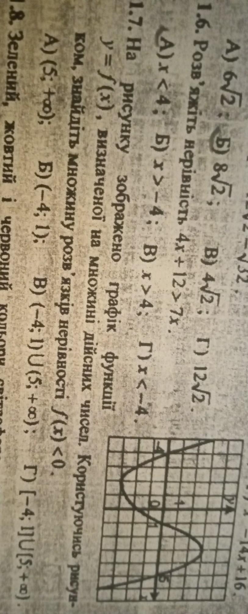 на рисунку зображено графік функції у=f(х) визначеної на множині дійсних чисел .Користуючись рисунком знайдіть множину розвязків нерівності f(х)<0