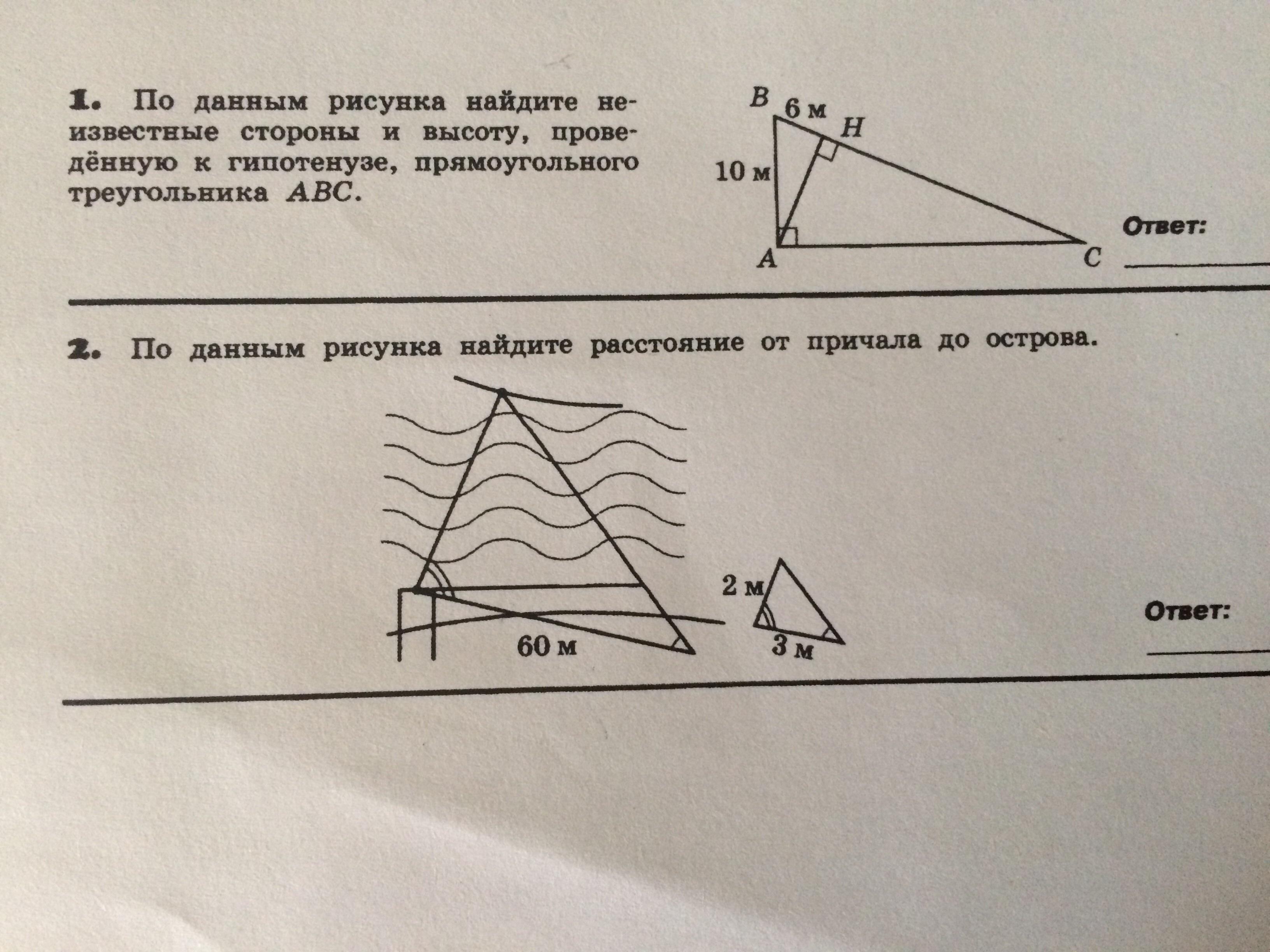 По данным рисунка найдите неизвестные стороны и высоту проведённую к гипотенузе прямоугольного треугольника ABC.Помогите срочно