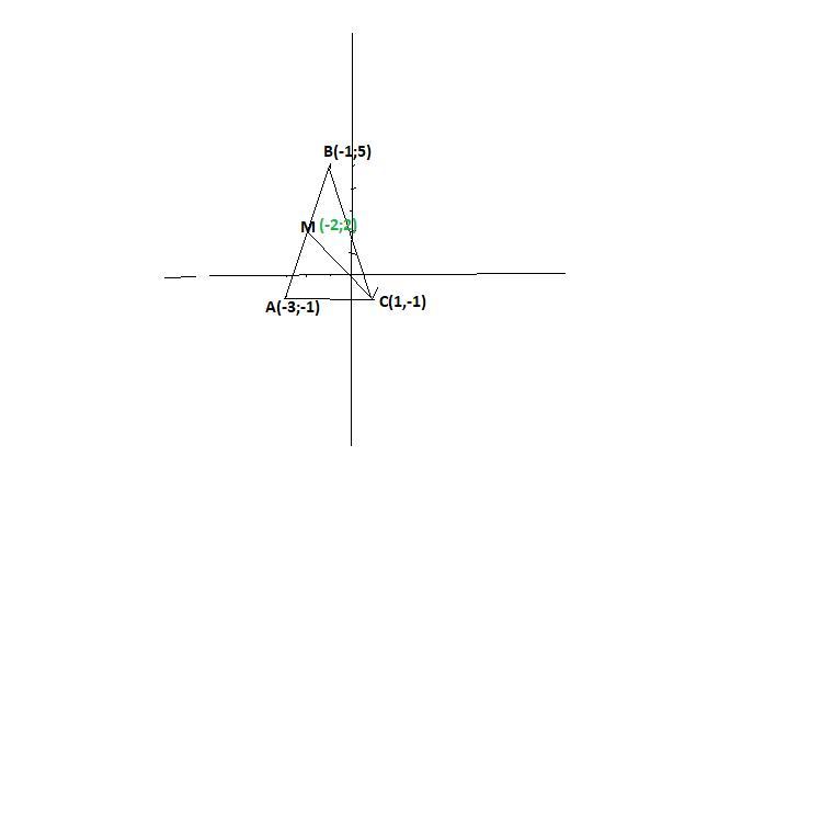 1) В треугольнике вершины которого заданы точками A(-3; -1), B (-1; 5), C (1; -1) проведина медиана CM.