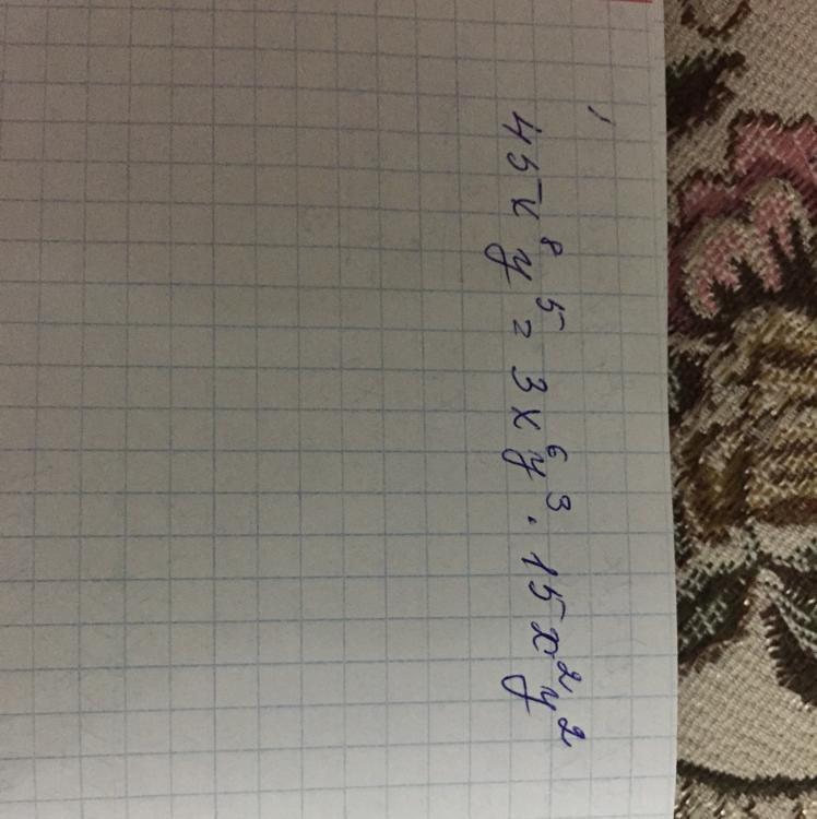 Дописать в качестве множителя одночлен стандартного вида, чтобы получилось верное равенство 45x⁸y⁵=3x⁶y³· ______
