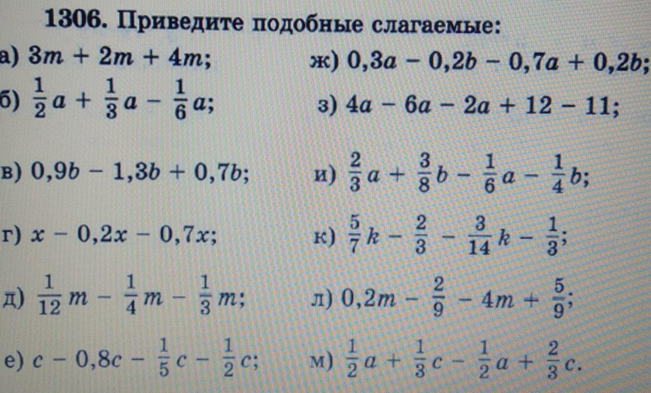 Пошаговое объяснение: a)7m б)4/6a в)0,3b г)0,1х д)-0,5m e)-0,5с ж)-0,4а з)1-4а