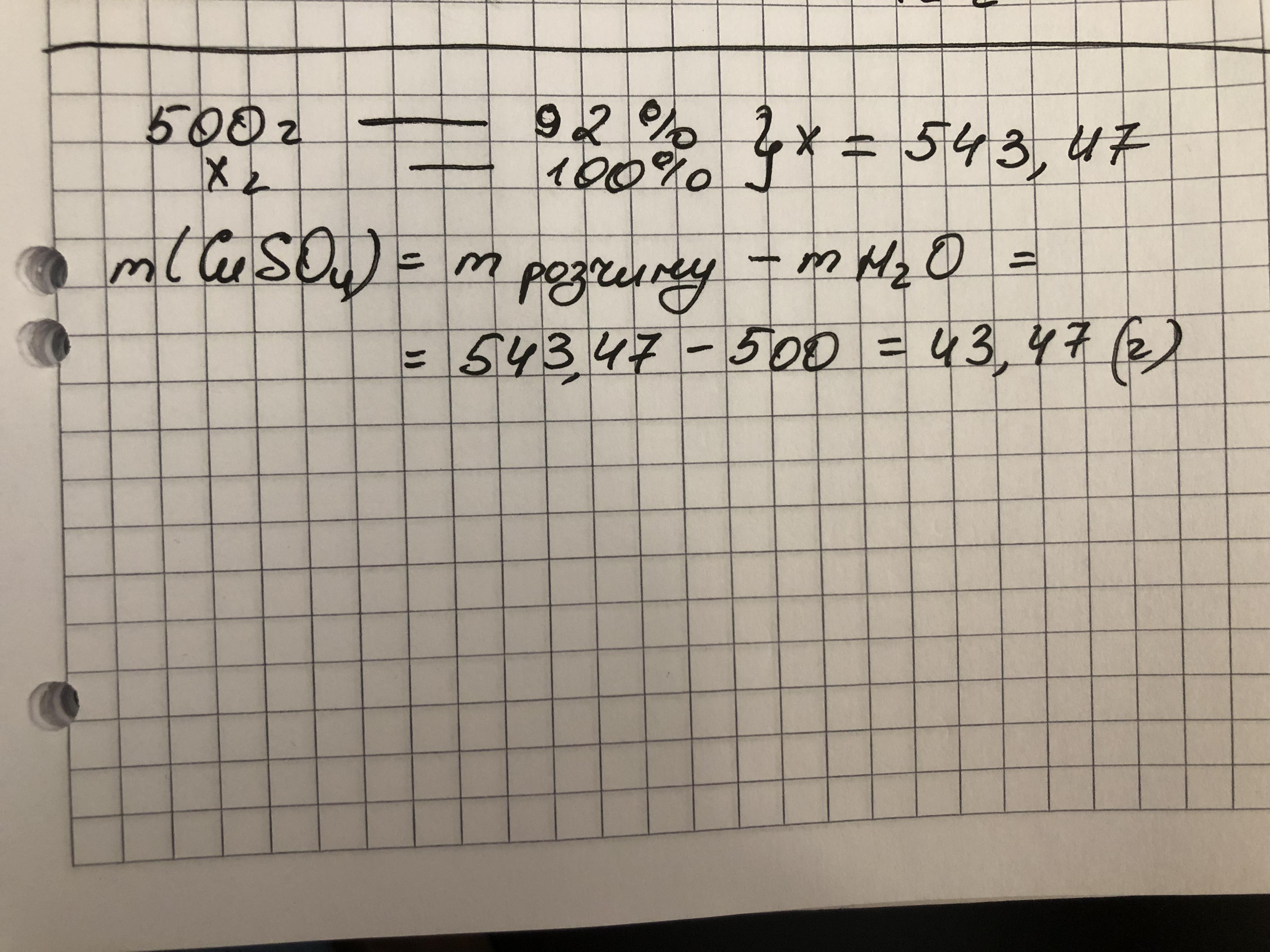 Яку масу Купрум Сульфату слід розчинити у воді масою 500 г,щоб утворився розчин з масовою часткою 8%
