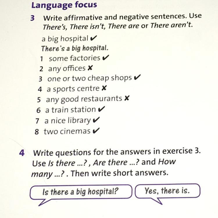 3 Write affirmative and negative sentences. Use There's, There isn't, There are or There aren't