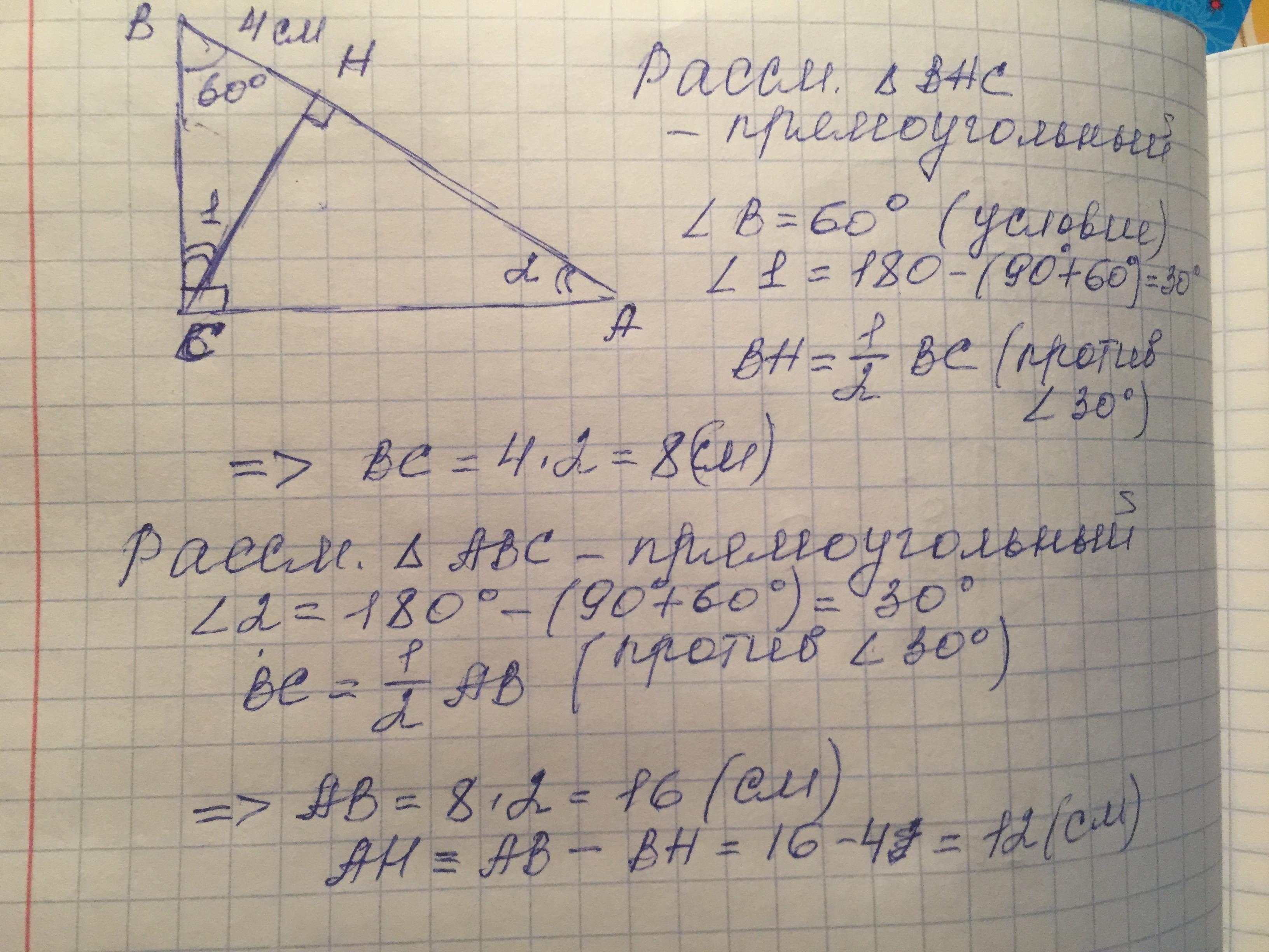 BH=4;∆ABC ;<BCA =90°;<B=60°