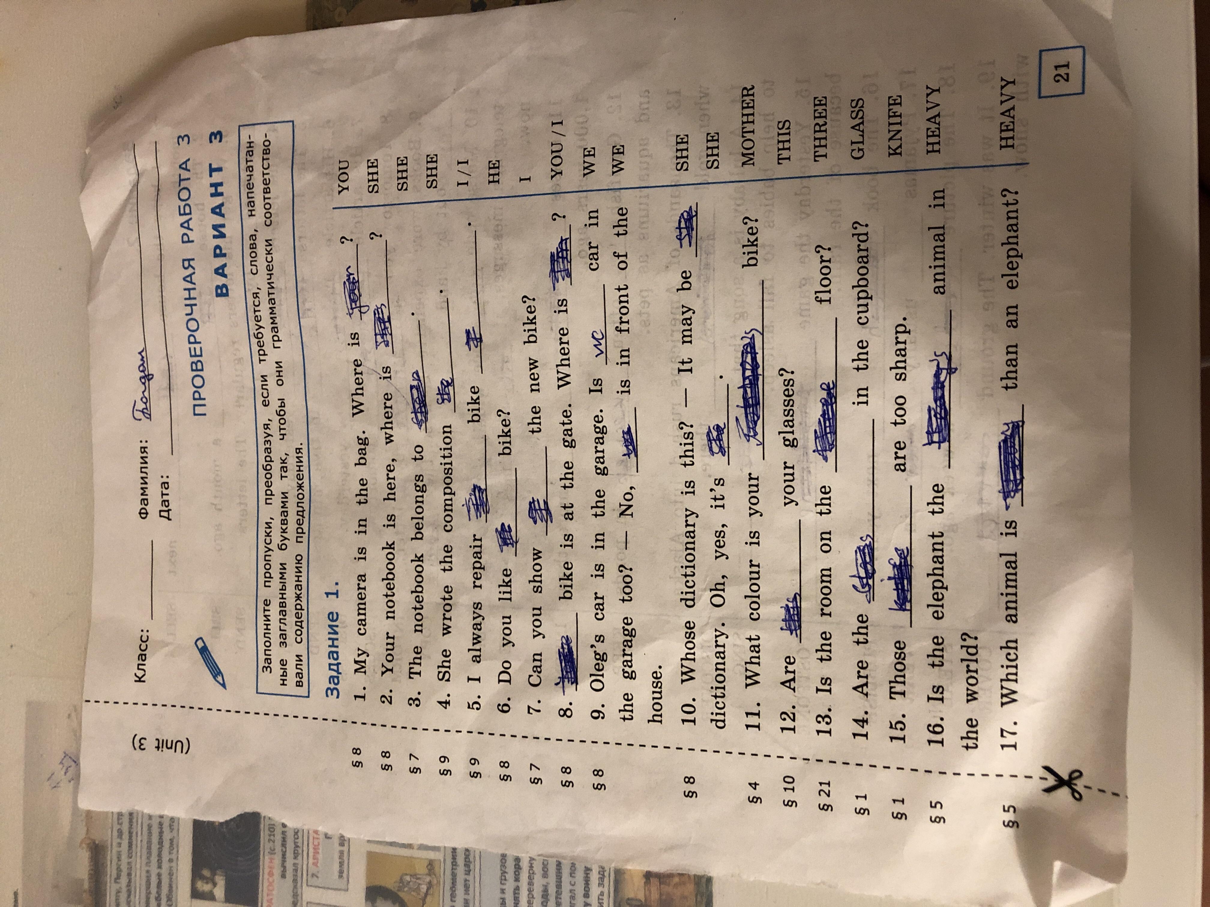 1. yours. 2. hers. 3. her. 4. herself. 5. my... myself. 6. his. 7. me. 8.Your, mine. 9. our, our. 10. Her, hers. 11. Mothers. 12. these. 13. Third. 14.glasses. 15.knives. 16. Heaviest. 17. Heavier.