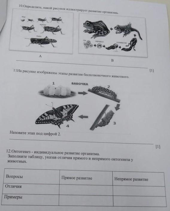 Заполните таблицу, указав прямого и непрямого онтогинеза у животных.