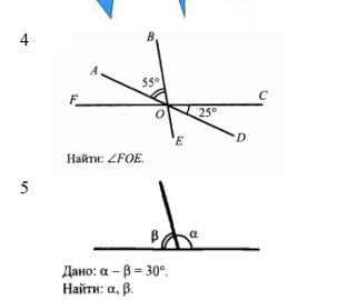 4. угол FTE равен 100° , так как расмотрим углы ЕОD и АОВ они вертекальные а значит равны, также и с углами DOC и АОF (они вертикальные и равны между собой) , также и с углами FOE и ВОС (они вертикальные и равны); также можно проверить это сложив таким образом все углы 100+100+55+55+25+25=360°