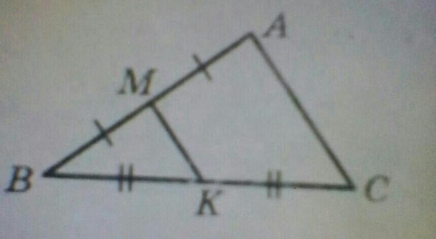 отрезок mk - средняя линия трапеции треугольника abc, изображенного на рисунке, mk - 8 см. Какова длина стороны ad?