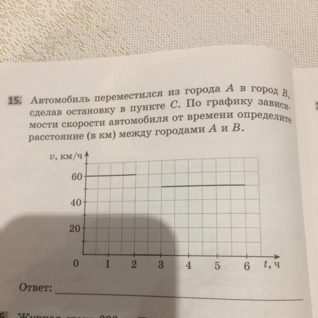 После остановки в городе С автомобиль двигался 3 часа (6 - 3 = 3 по графику) со скоростью 50 км/ч.
