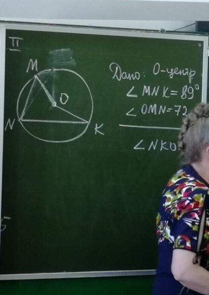 Продолжим МО до пересечения с окружностью, т.Е и также ОК, т. Р. Дуга МК равна89*2=178и <МОК=178, тогда вертикальный< РОЕ=178 и тогда дуга РNЕ=178, дугаNЕ=2*72=144 и дуга РN=178-144=34, <РКN=1/2 дуги РN=17.