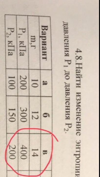 Найти изменение энтропии при изотермическом расширении массы m водорода от давления P1 до давления P2.