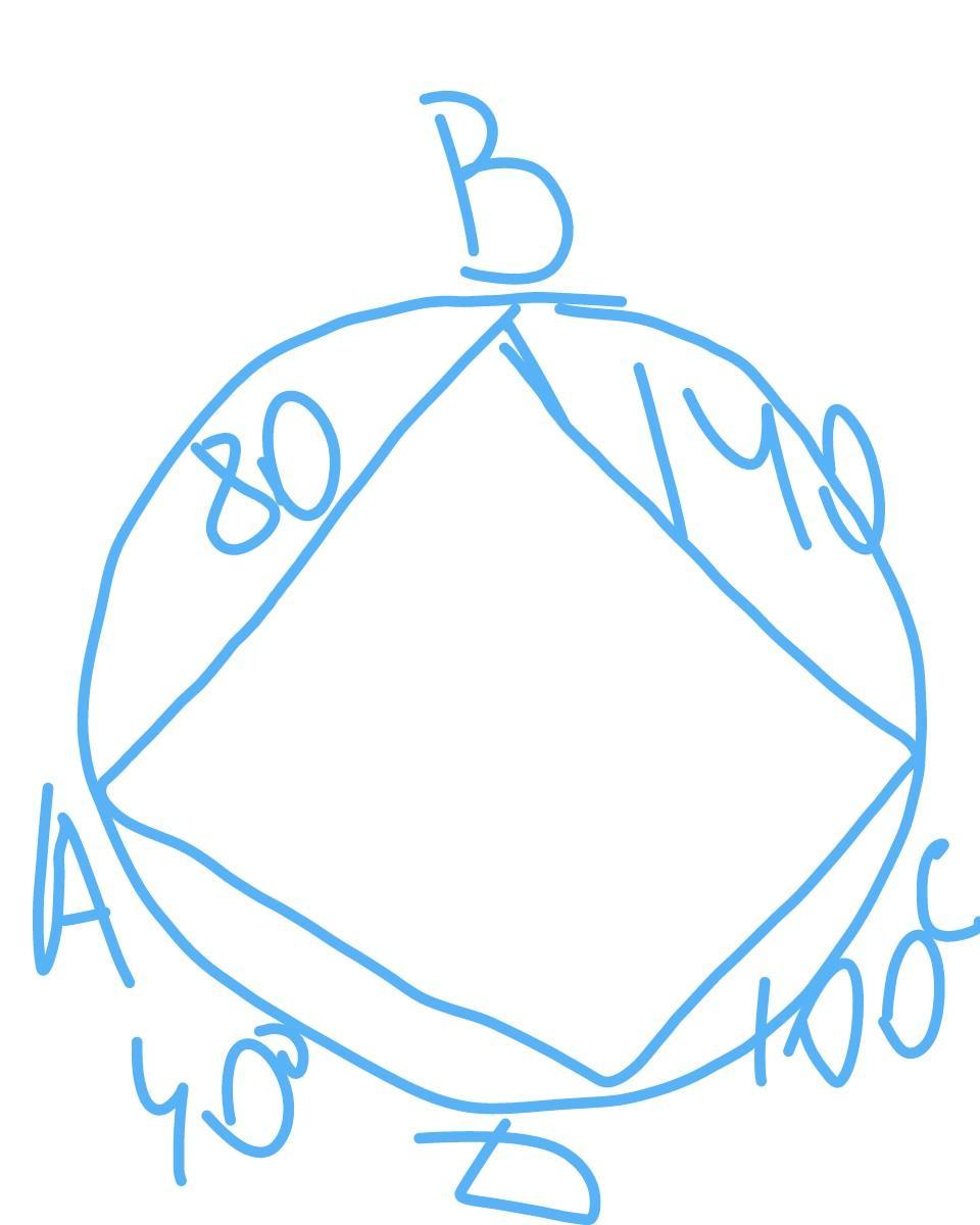 Стороны АВ, ВС, СD, вписанного четыре угольника ABCD отсекают дуги, градусные меры которых относятся как 4: 7: 5. Найдите углы четырехугольника, если сторона AD отсекает дугу в 40 градусов