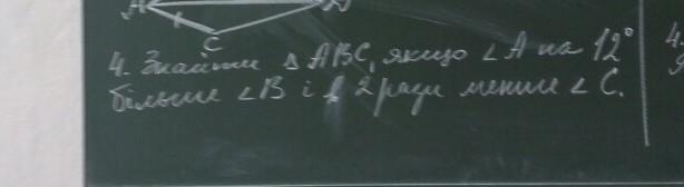 знайти трикутник АВС якщо кут на 12 більше за кут В і в 2 рази менше за кут С​