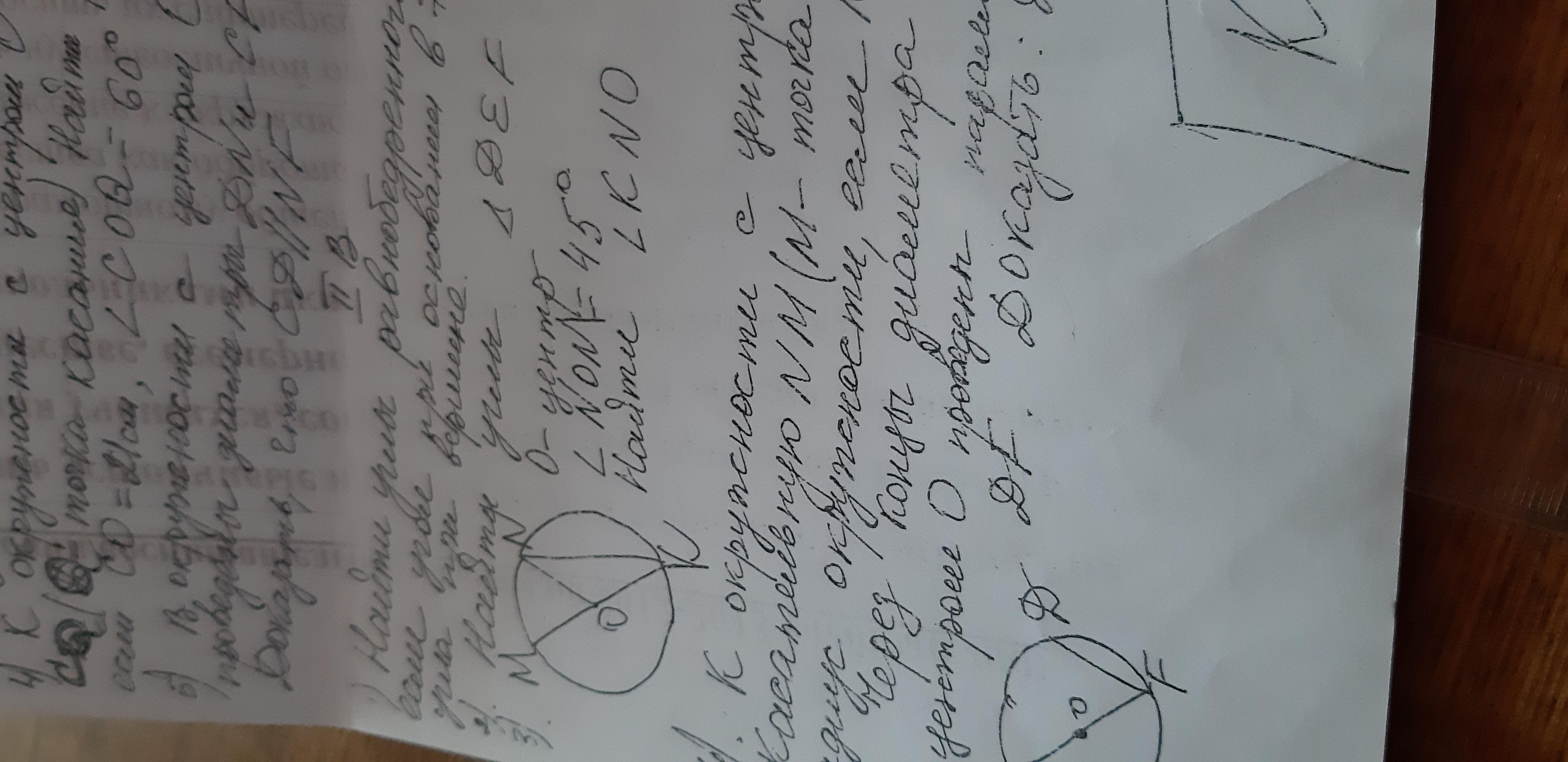 <МКN=<OКN,он вписанный , опирается на дугу МN и равен половине центрального угла NОМ.<OКN=1/2<NОМ=45°:2=22,5°