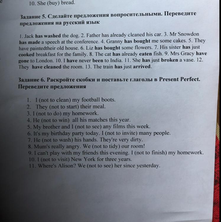 has jack washed the dog? Has father cleaned his car? has mr. snowdown made a speech?