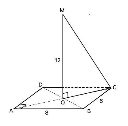 ABCD прямоугольник. MO перпендикулярен ABC, MO=12, АВ=6, AD=8. Найдите MC.