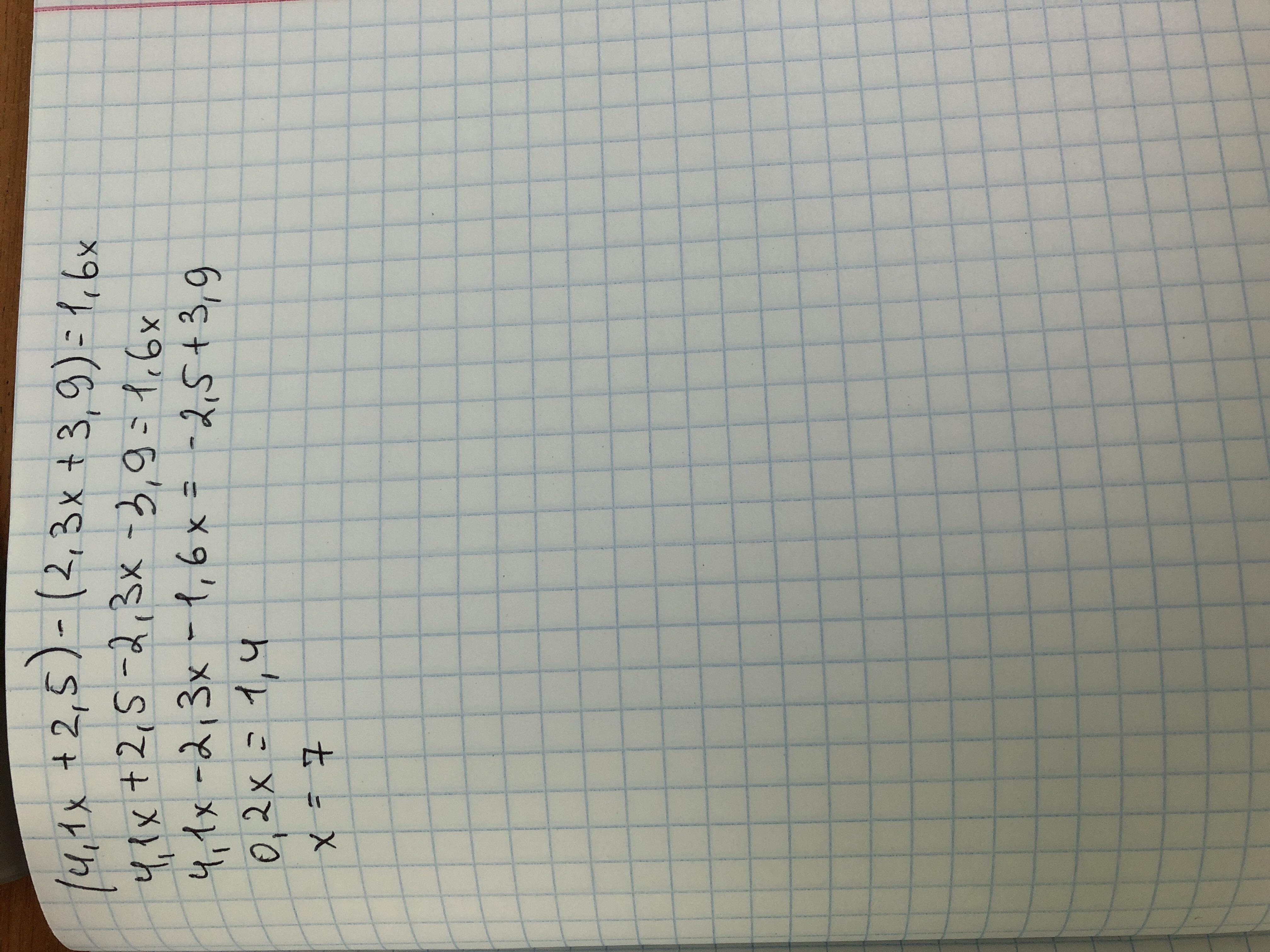 (4.1x+2.5)-(2.3x+3.9)=1.6x