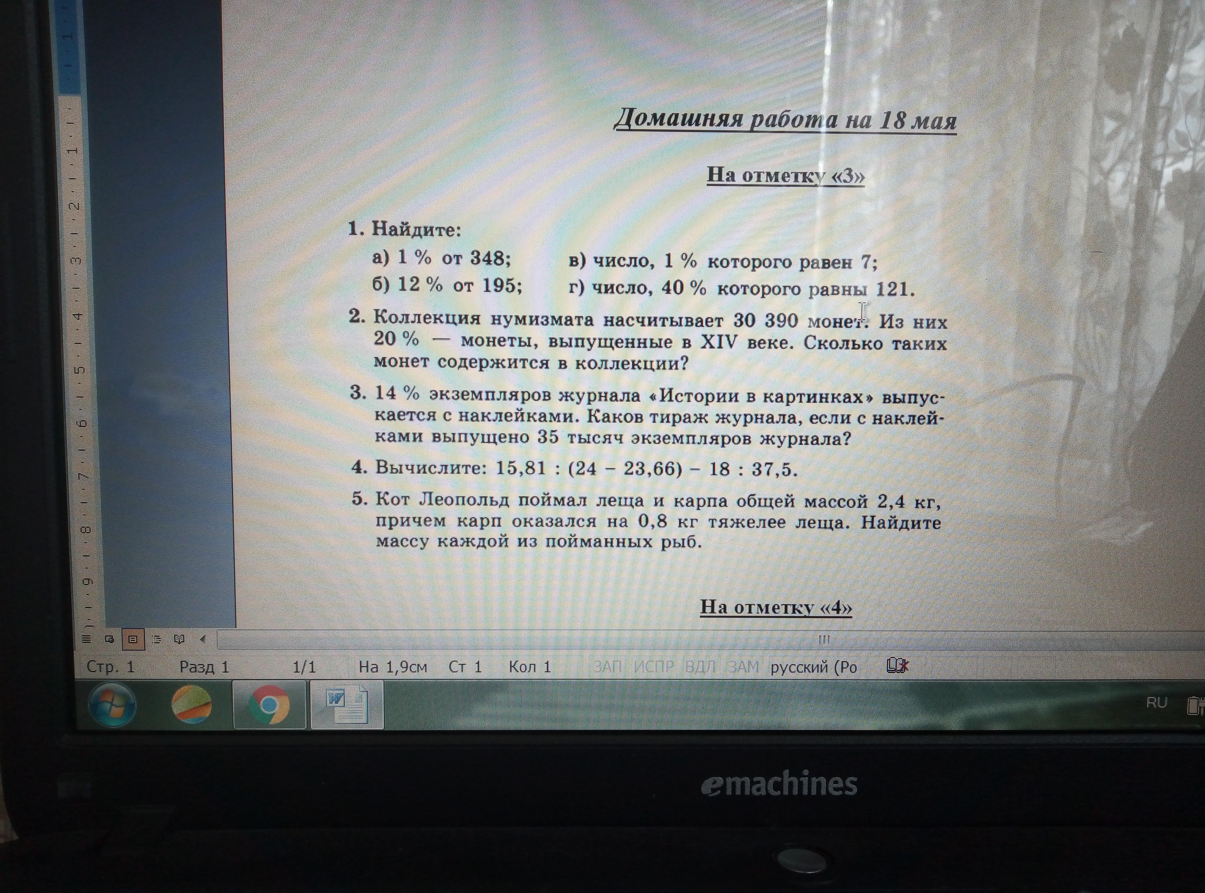 ответ 0,8 кг- карп, 1,6кг- лещ