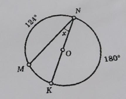 Две части известны: MN=124°, NK=180°, поэтому мы можем найти MK. MK= 360°- (180°+124°)= 360°- 304°=56°