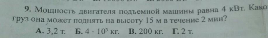 N=A/t; A=mgh; N=mgh/t; m=Nt/gh=4*10^3Вт*120с/10Н/кг*15м=3,2*10^3=3,2 т