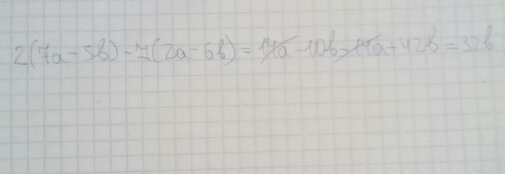 2(7a – 5b) - 7(2а – 6b) = 14a - 10b - 14a + 42b = 32b