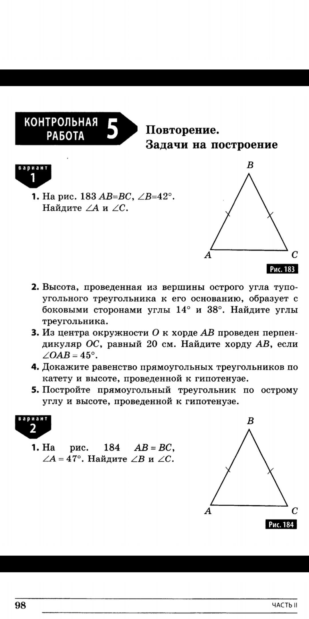 1. На рис. 183 AB=BC, ZB=42°