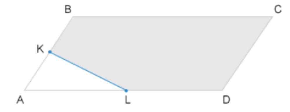 Точки К і L середини сторін AB і AD паралелограма ABCD (див. рисунок ) . Знайдіть площу п'ятикутника KBCDL ( (у cм2 ) , якщо площа паралелограма ABCD дорівнює 24 см2.
