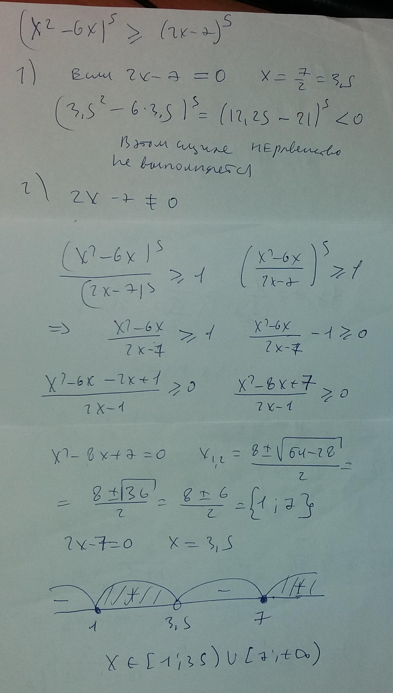 (х-1)(х-7)*(2х-7)≥0, при условии х≠3,5