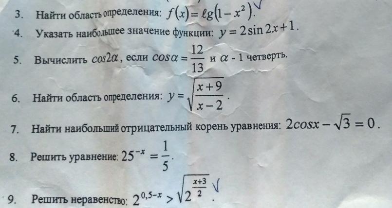 6) (х+9)/(х-2)>=0 решаем методом интервалов х∈(- ∝;-9]∪(2;+∝)