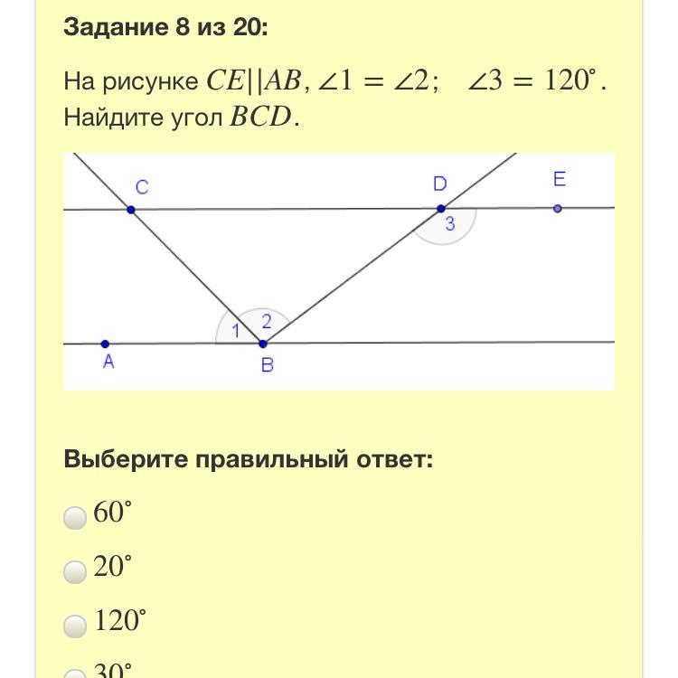 угол 4 равно 60 и он же равен углу BCD как внутренние накрест лежащие.