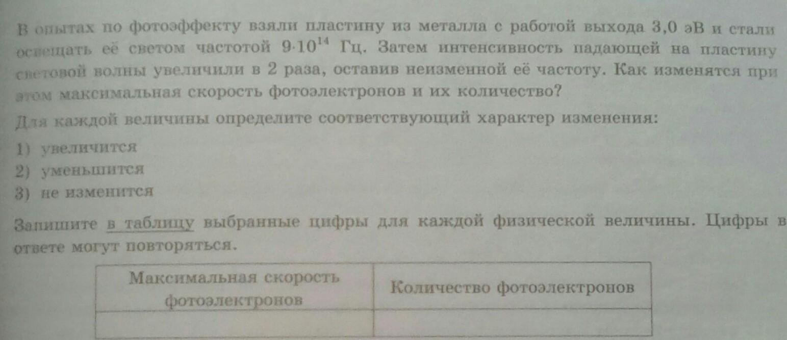После изменения интенсивности освещения количество фотонов, а значит, и количество фотоэлектронов увеличилось вдвое, а энергии электронов (а значит, и их скорости - ) не поменялись