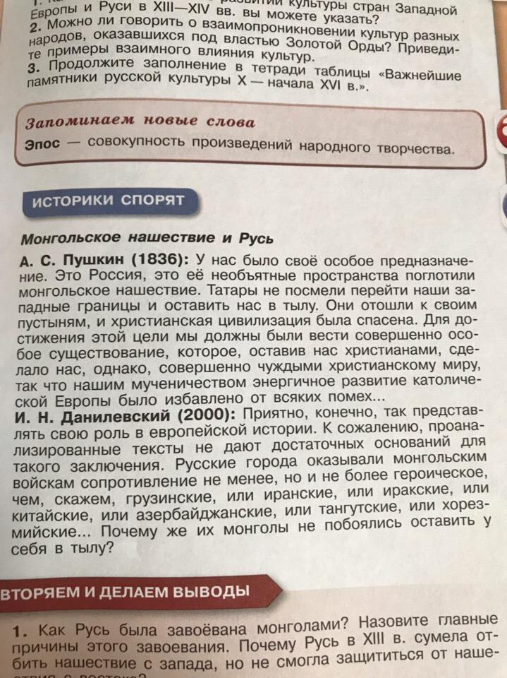 мне кажется, что прав Александр Сергеевич Пушкин. Мы выдержали все испытания. Наш народ выстоял и не склонился перед монголами. Конечно сначала мы платили дань монголам (но всё же Русь не была включена в состав Монгольской империи), но благодаря Ивану Даниловичу (Калите) и его преемникам Русь вздохнула спокойнее, она собирала армию, да и крестьяне уже готовы были взяться за оружие, а потом и совсем избавилась от ордынцев.