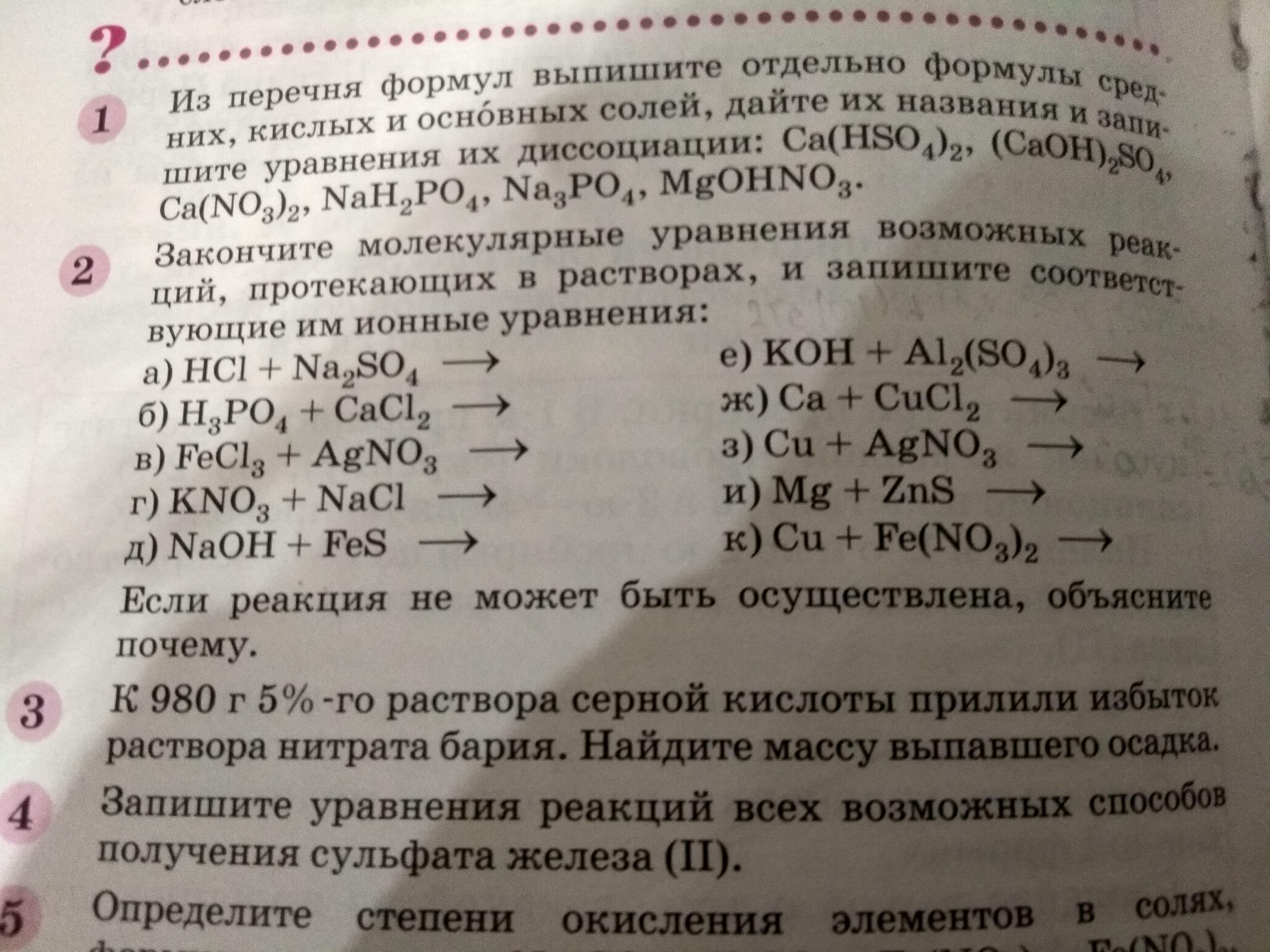 Закончите молекулярные уравнения возможных реакций, протекающих в растворах, и запишите соответствующие им ионные уравнения