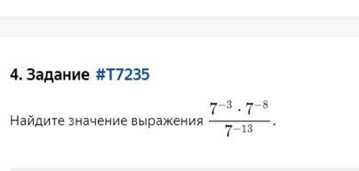 7(-3)*7(-8)/7(-13)=7(-11)/7(-13)= 7(2)= 49