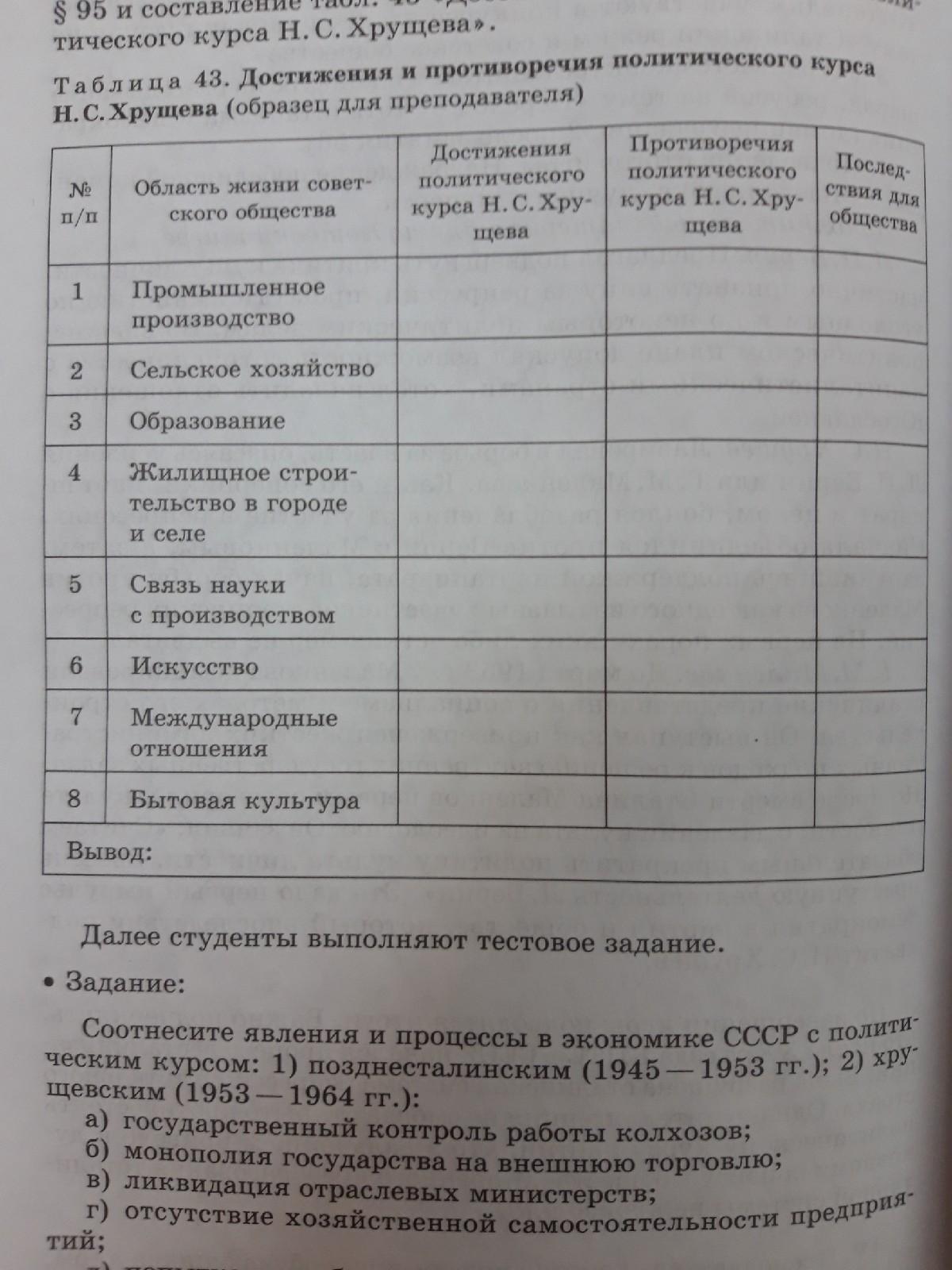Помогите пожалуйста!!!Заполните табл.Достижения и противоречия политического курса Н.С. Хрущева