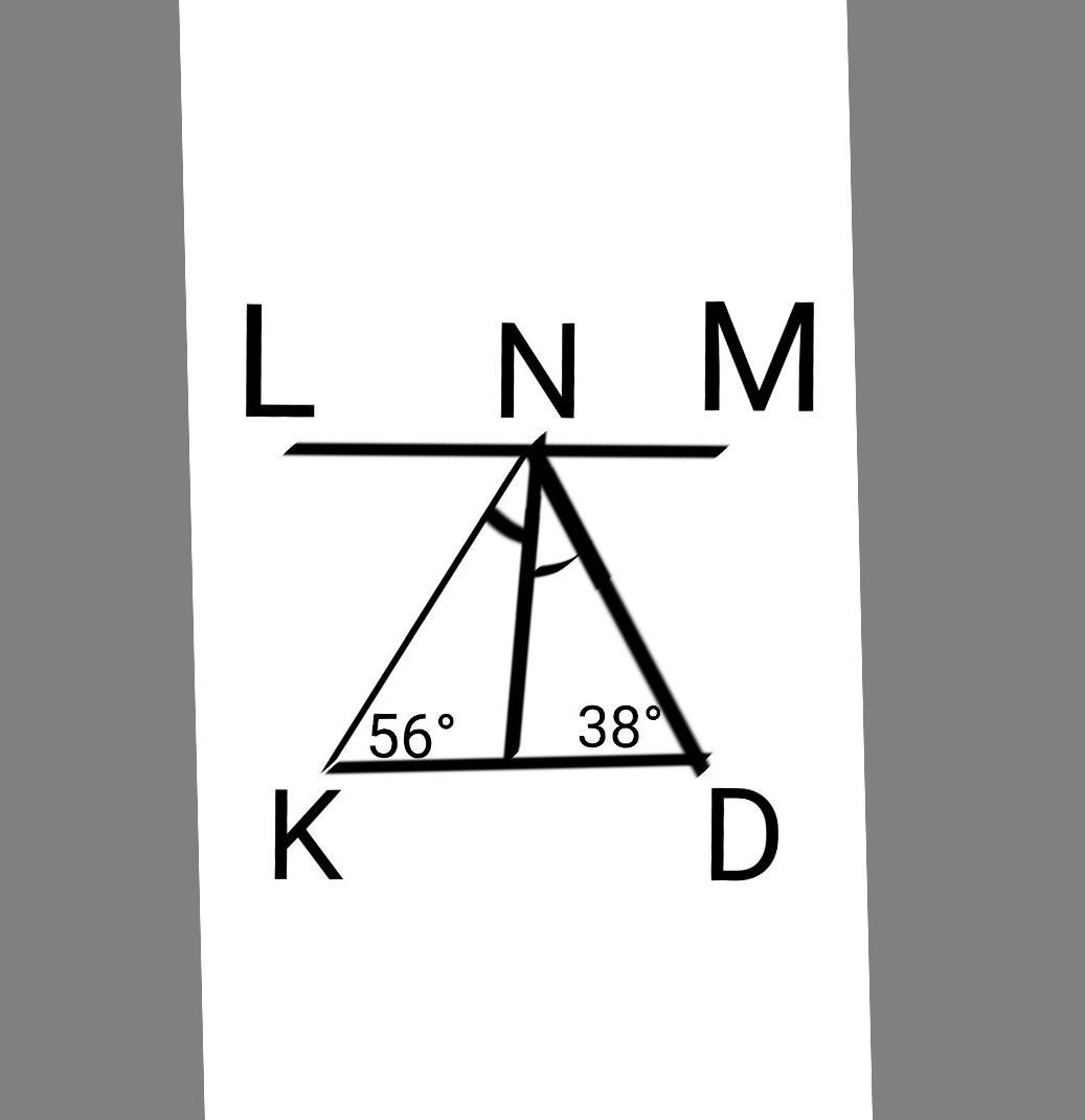В треугольнике KND угол K равен 56 градусов угол D равен 38 через вершину N проведена прямая LM Параллельная KD Найдите угол MNR если NR биссектриса угла KND