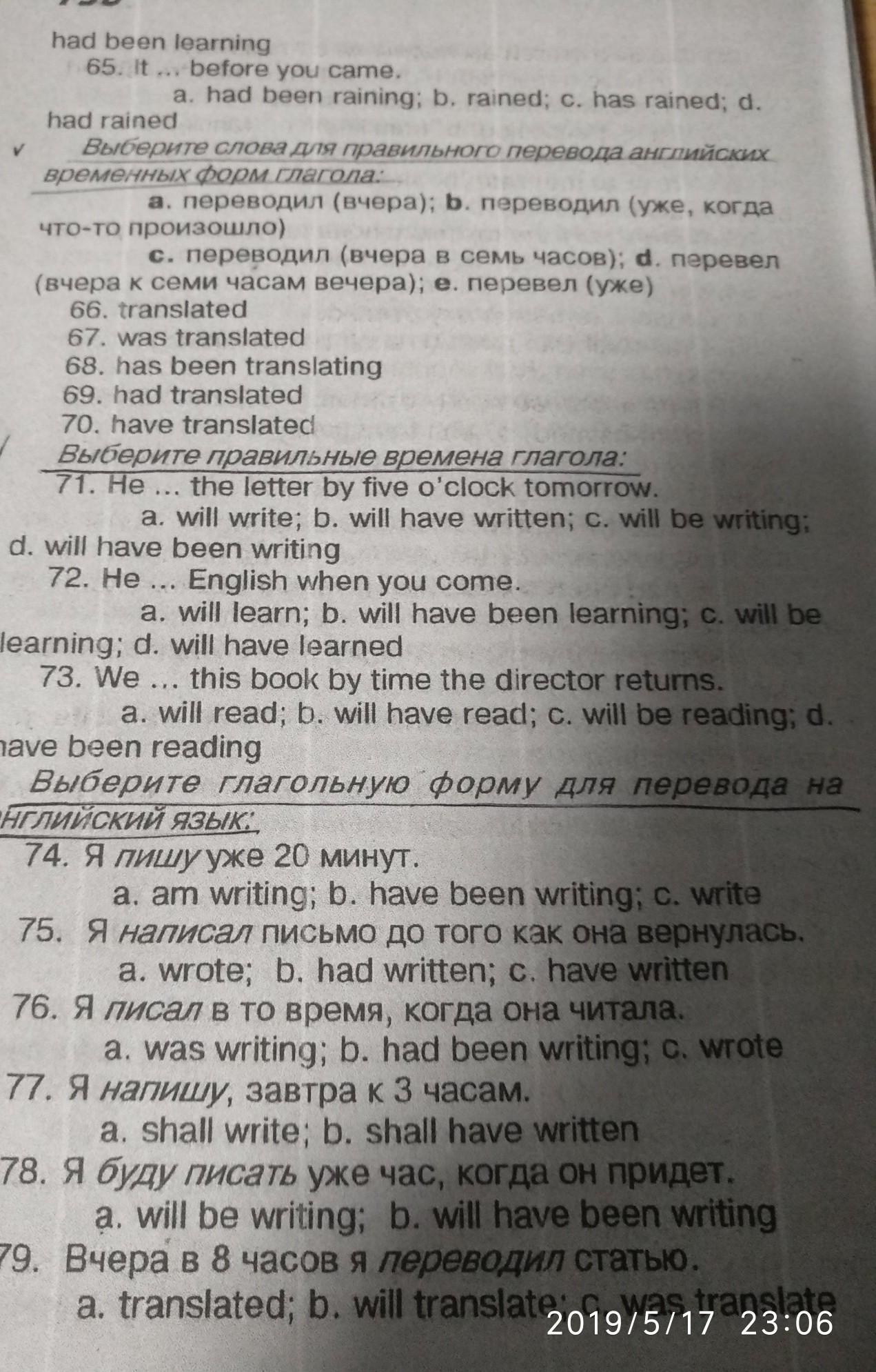 78 я буду писать уже час ,когда он придет ответ b) will have been writing