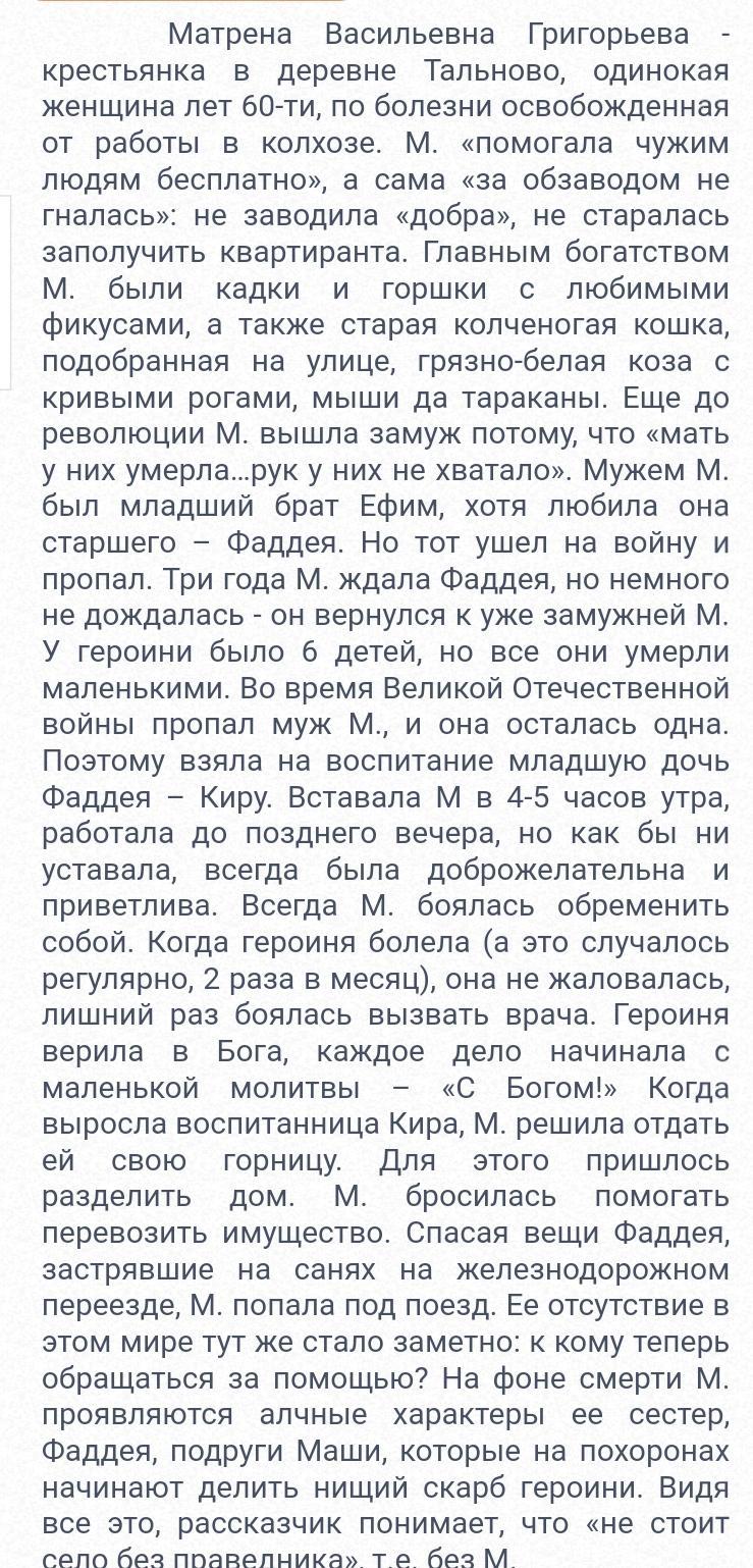 Мне не объяснение нужно , а именно вот это ( Расскажите о жизни и судьбе Матрены Васильевной Григорьевской , используя цитаты из текста) .