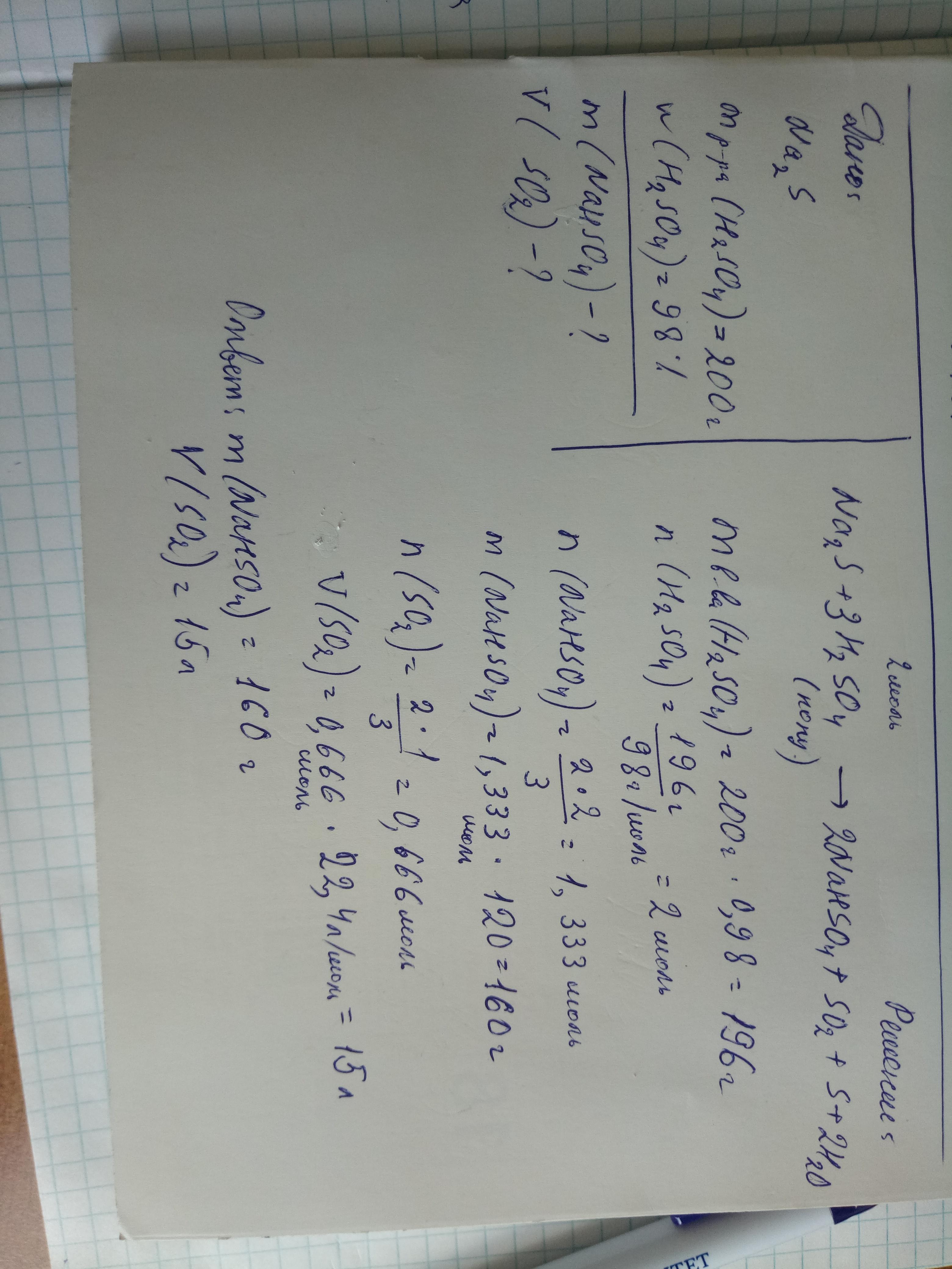 Вычислите массу соли и объем газа которые могут образоваться при взаимодействии сульфида натрия с 200г раствора серной кислоты с массовой долей кислоты 98%