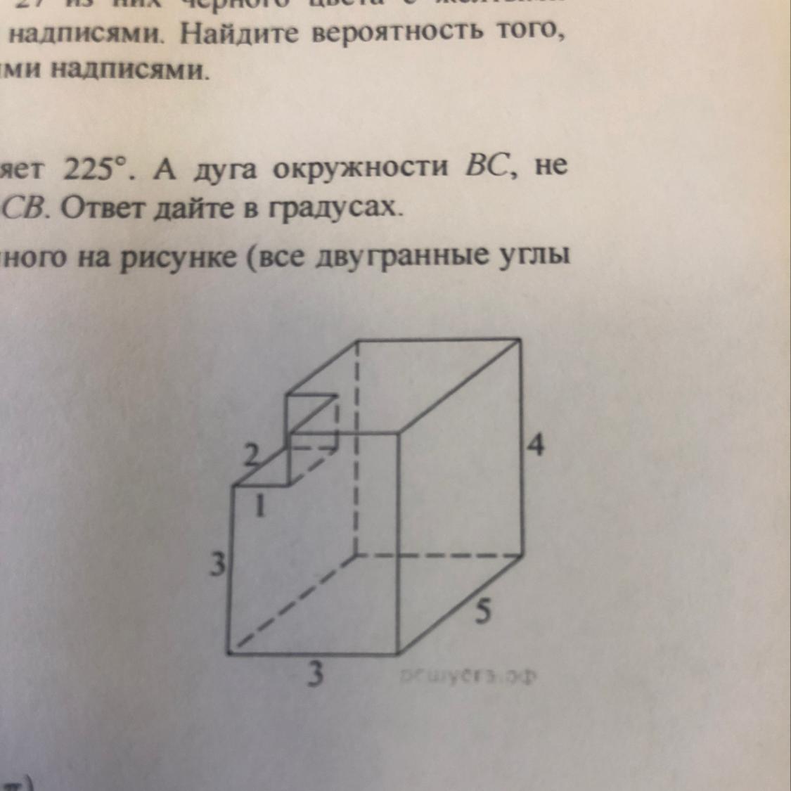 Найдите площадь поверхности многогранника изображённого на рисунке(все двугранные углы прямые)