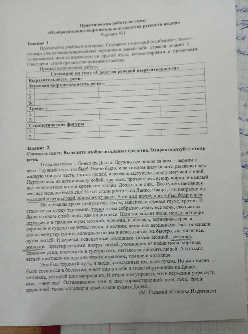 Анафора: Шли маленькие люди, между больших деревьев и в грозном шуме молний, шли они, и, качаясь, великаны деревья скрипели и гудели сердитые песни...