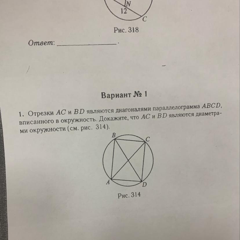 Докажите, что диагонали параллелограмма—диаметры окружности
